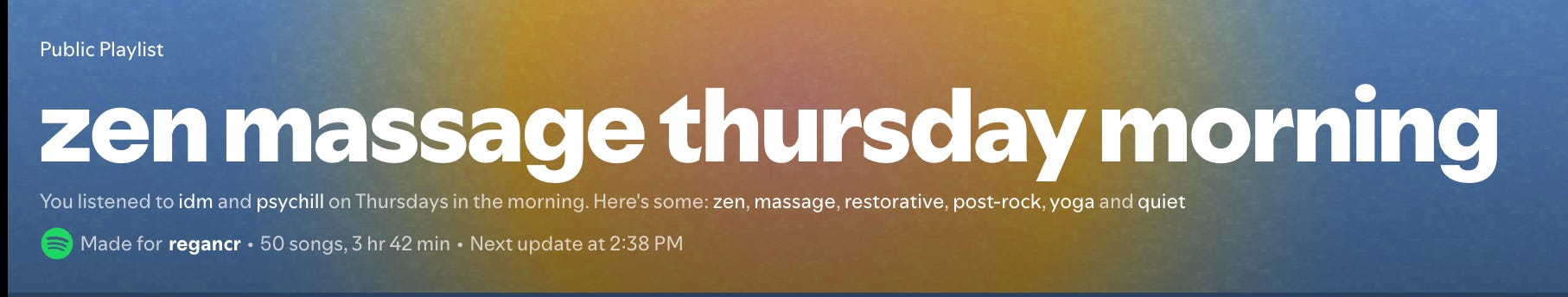 3.) a dynamic playlist from Spotify 🎧 that’s WAY better than regular shuffle/radio.