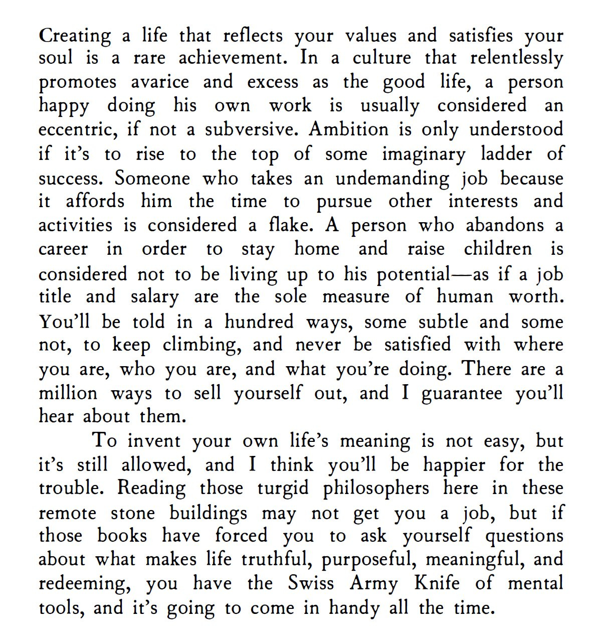 I’d recommend reading the entire speech. It’s funny, deep & thought-provoking. But if you don’t have time, this is enough: