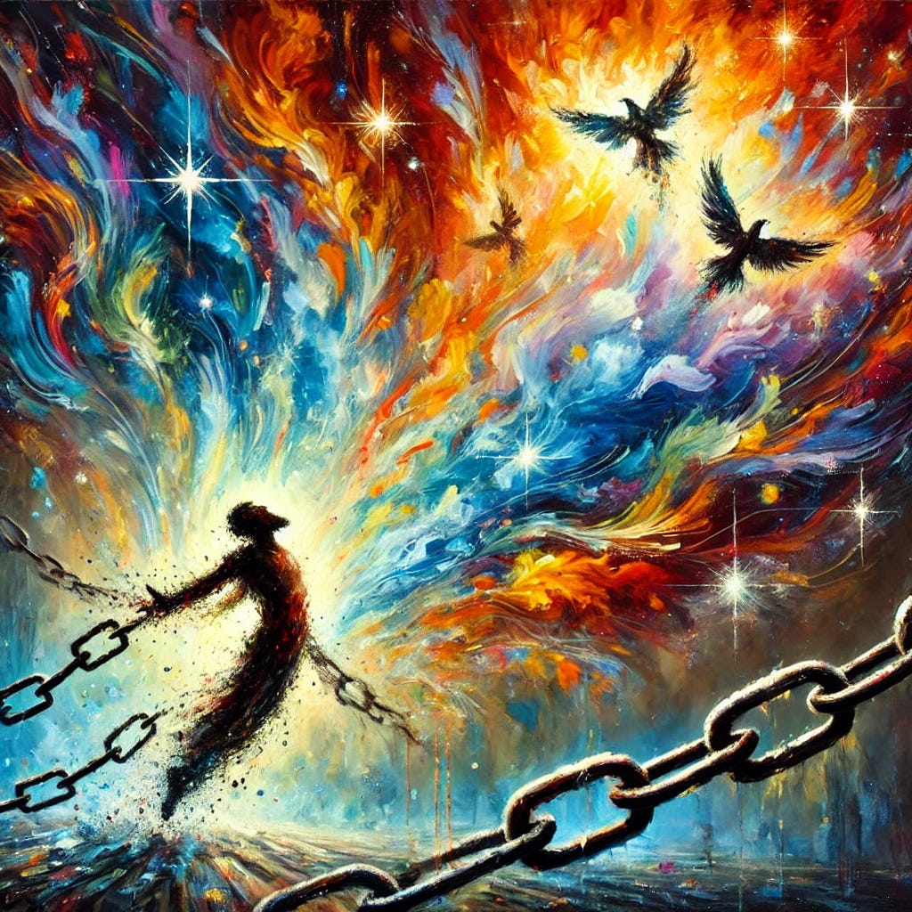 “Create an oil painting based on this phrase: free your imagination, free your life"