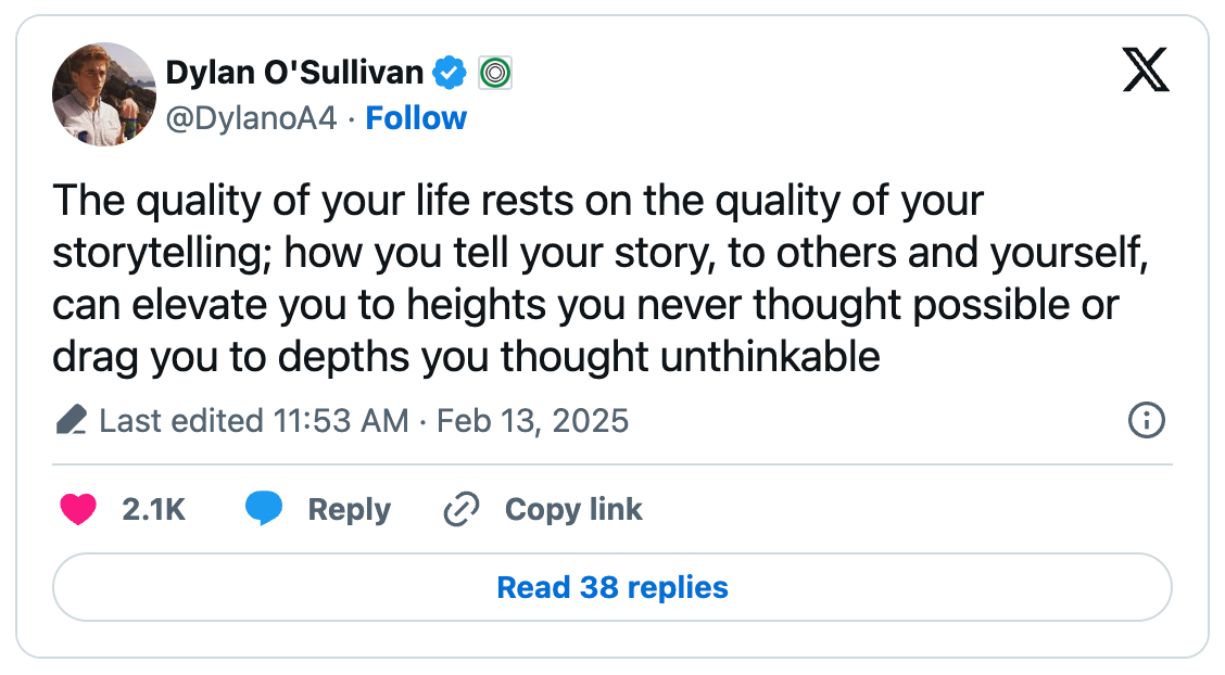 We see everything through the stories we tell ourselves. And the better those stories are, the better your life.
