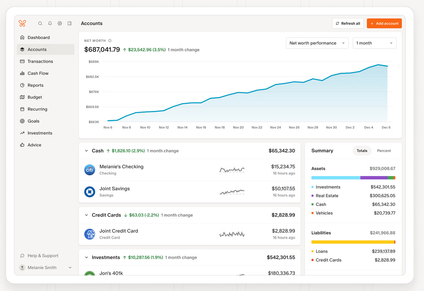 The interface is great, they have a good budget tool that I routinely napalm every month (organic honeycrisps are expensive ok?), they connect to just about all financial platforms (although they were late to the crypto party…no one’s perfect), have a simple net worth tracker and heaps of other interesting widgets.