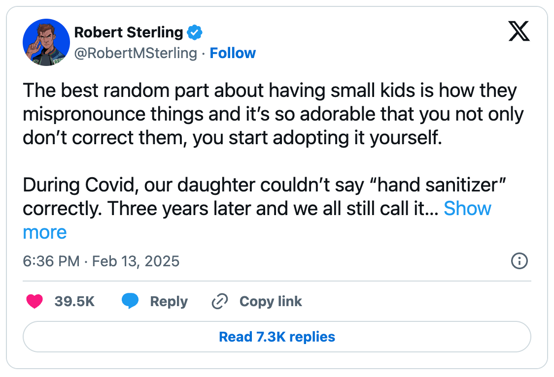 During Covid, our daughter couldn’t say “hand sanitizer” correctly. Three years later and we all still call it “hanzatizer.”