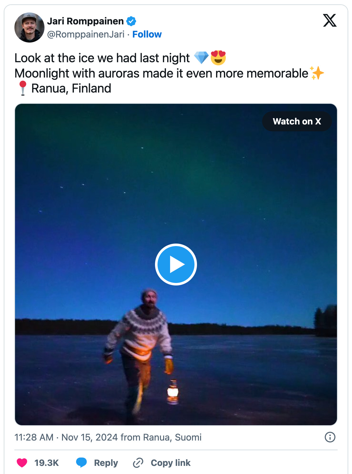 2.) a short clip ⛸️ of ice skating under the Auroras in Finland