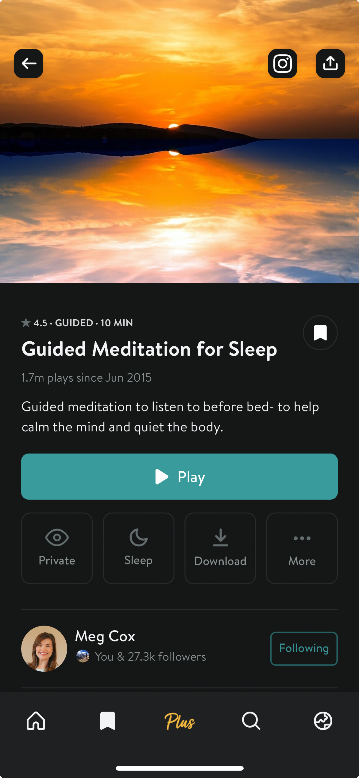 Insight Timer is a meditation app I’ve used for years. At some point, I found this short 10-minute Guided Meditation for Sleep from Meg Cox on there.