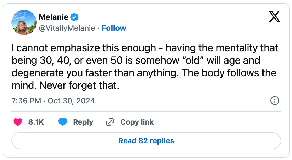 We’re always aging, there’s no escaping that. But getting “old” is a decision.
