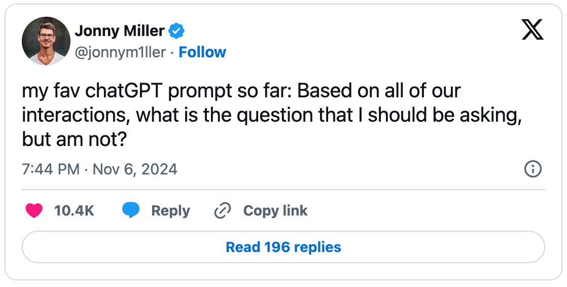 If your ChatGPT has any context on your life, this prompt can be very cool.